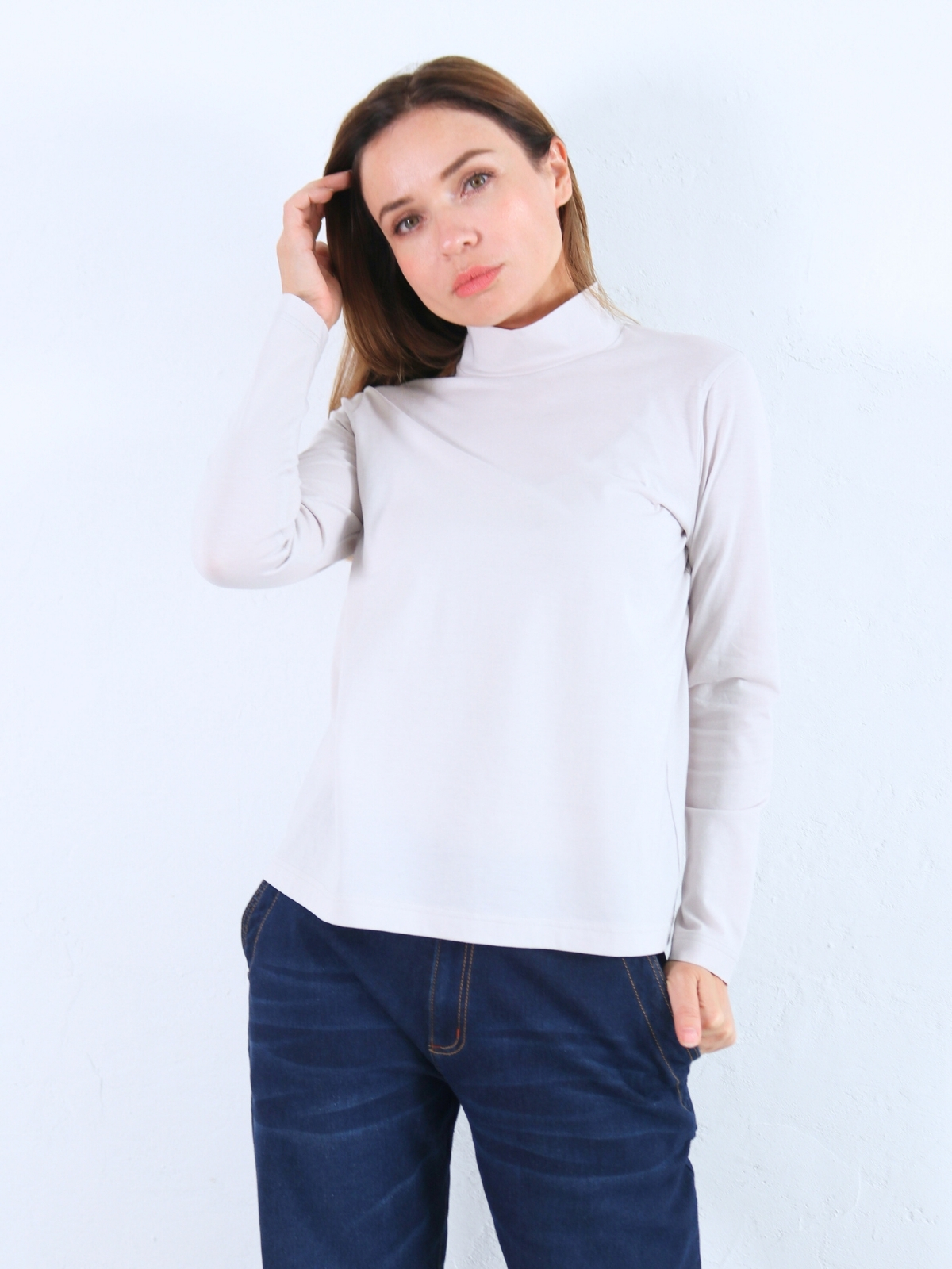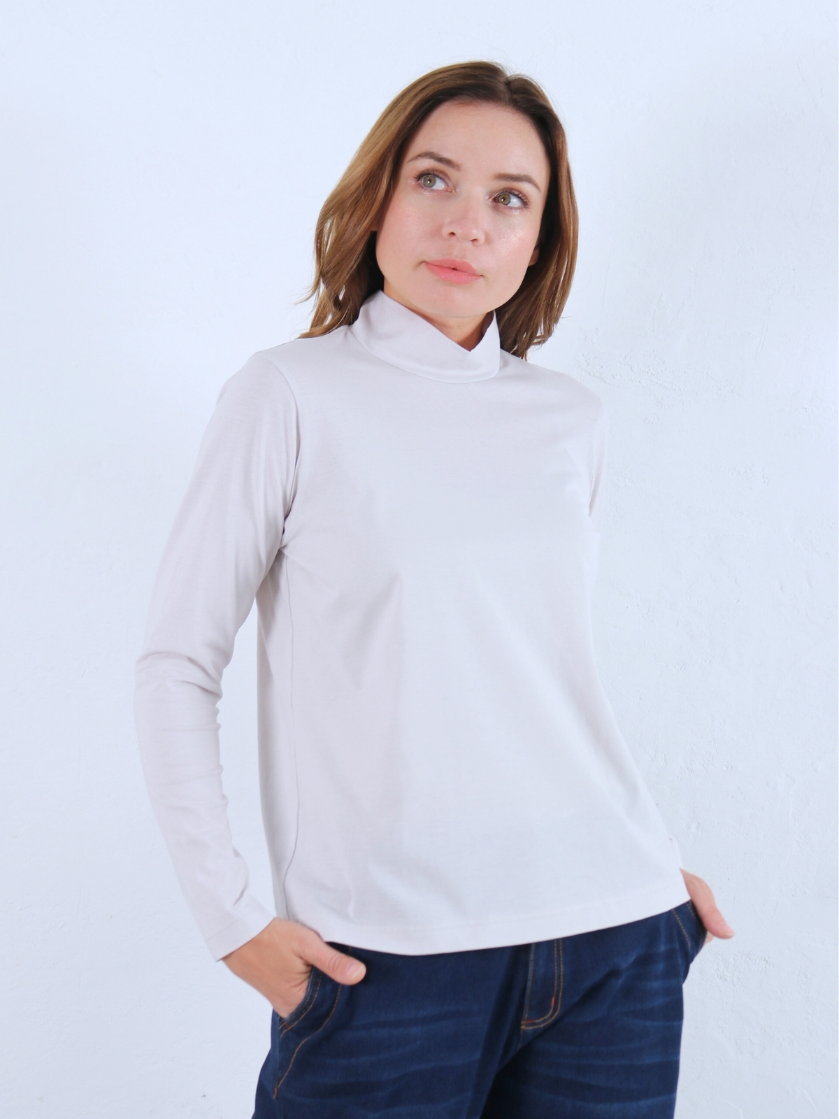 接触冷感の機能を備えたDRYで肌触りの良いジャージ素材のハイネックベーシックプルオーバー。