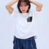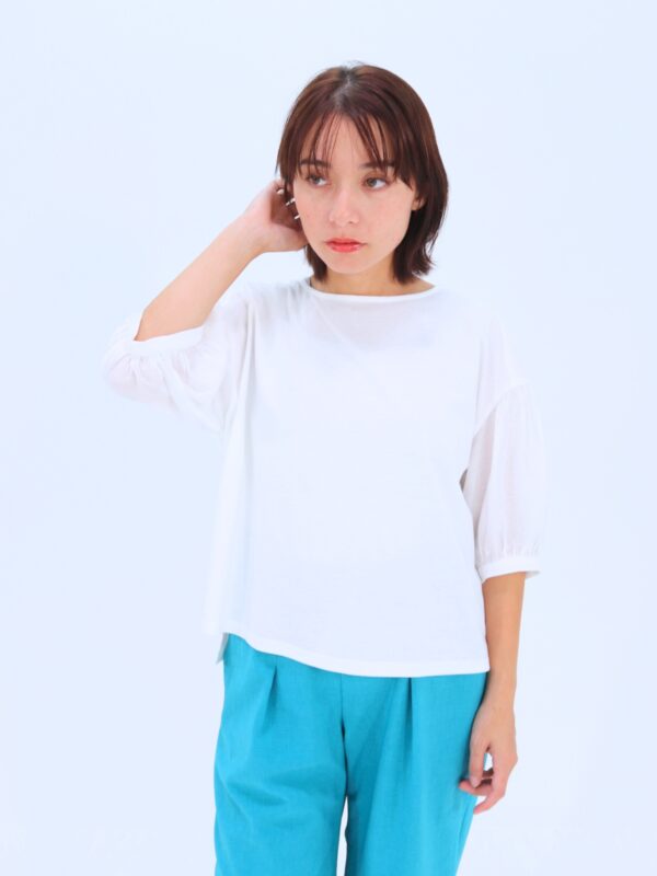 袖部分にソフトな布帛を使用した袖コンシャスデザイン。