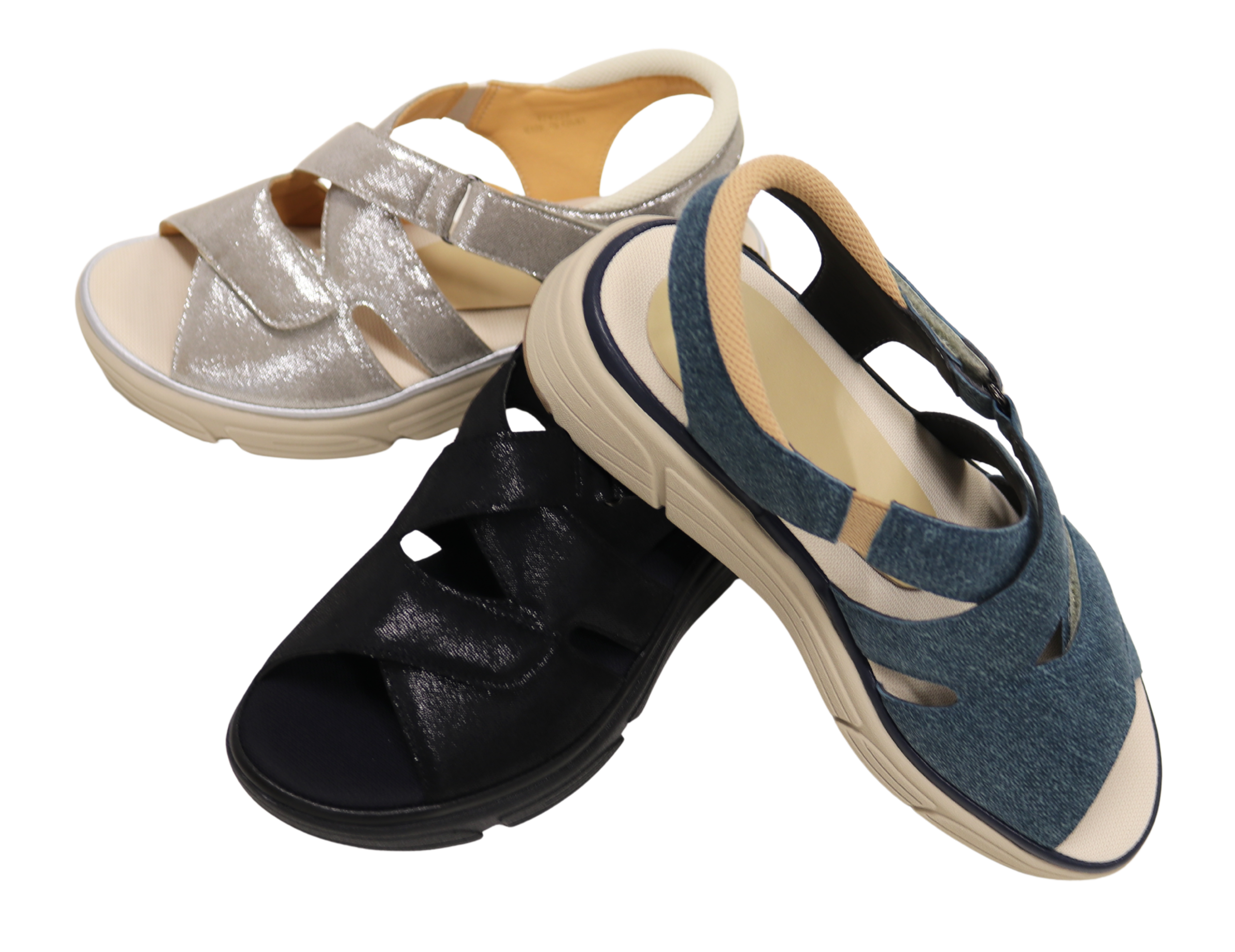 面テープ仕様で足にフィット👣 クッション性の高いインソールと接触冷感の中敷きを使用しています。