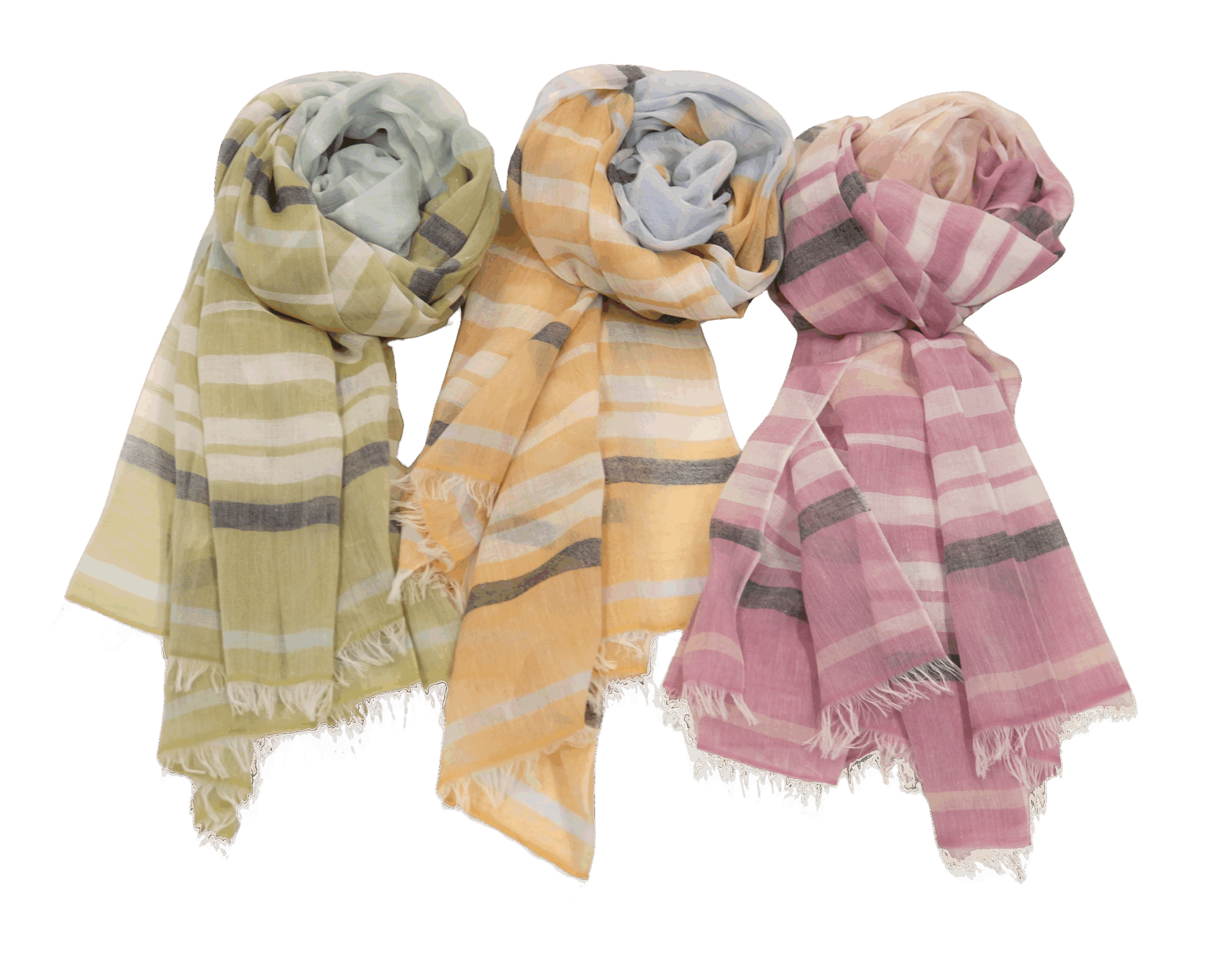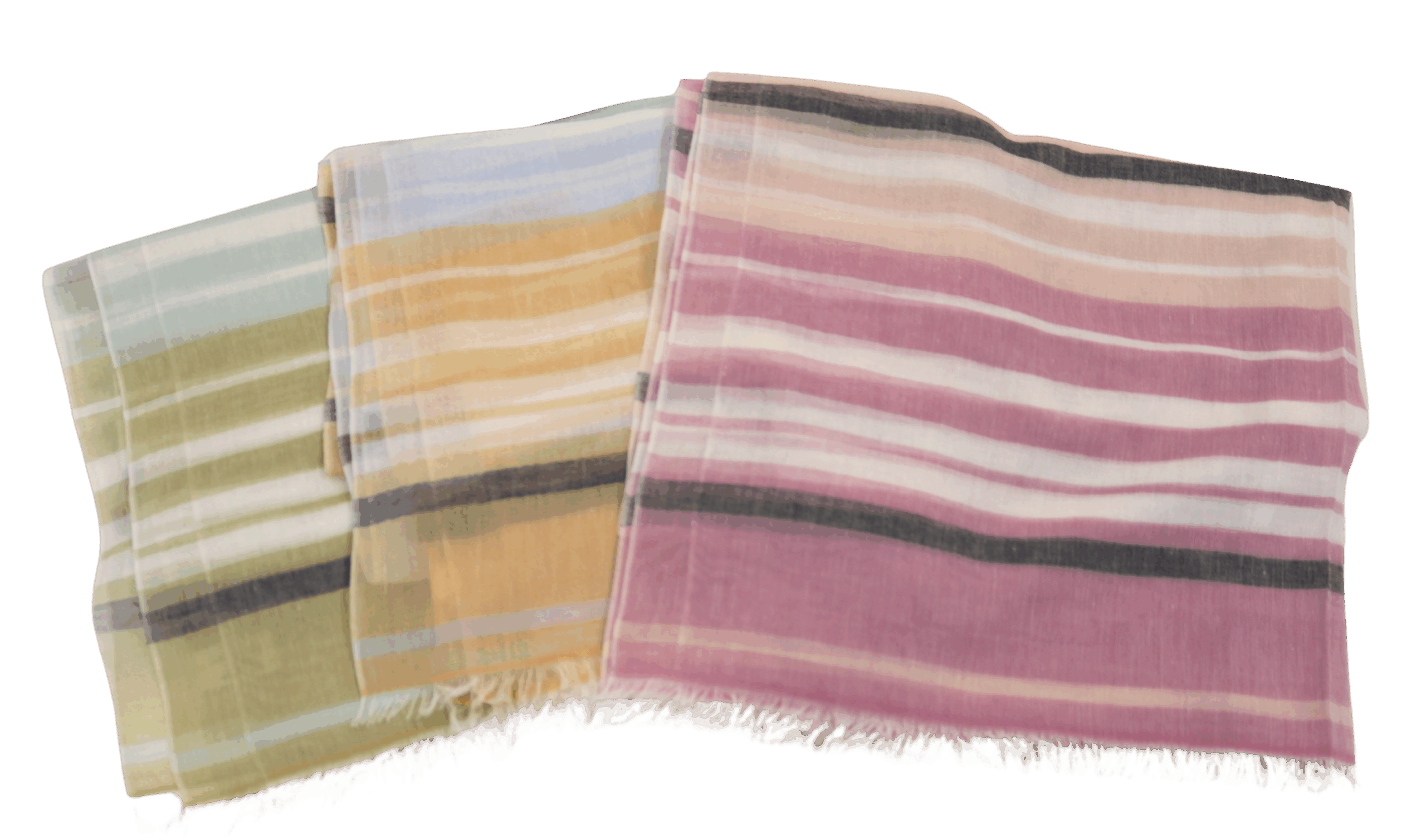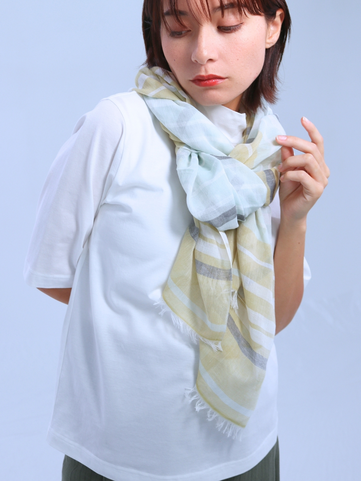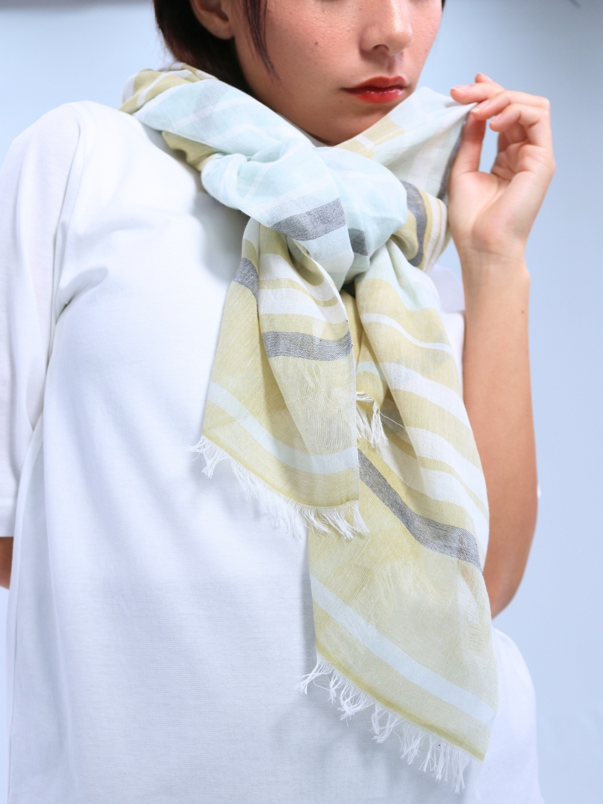 夏らしいカラーのマルチボーダーが印象的なストール。 柔らかな風合いがうれしい春夏にぴったりのアイテム!