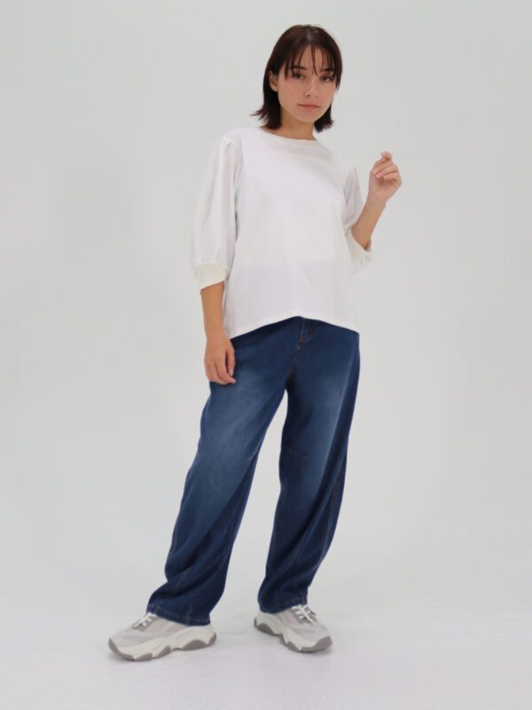 衿ぐりと袖口にはKNITリブを使用。