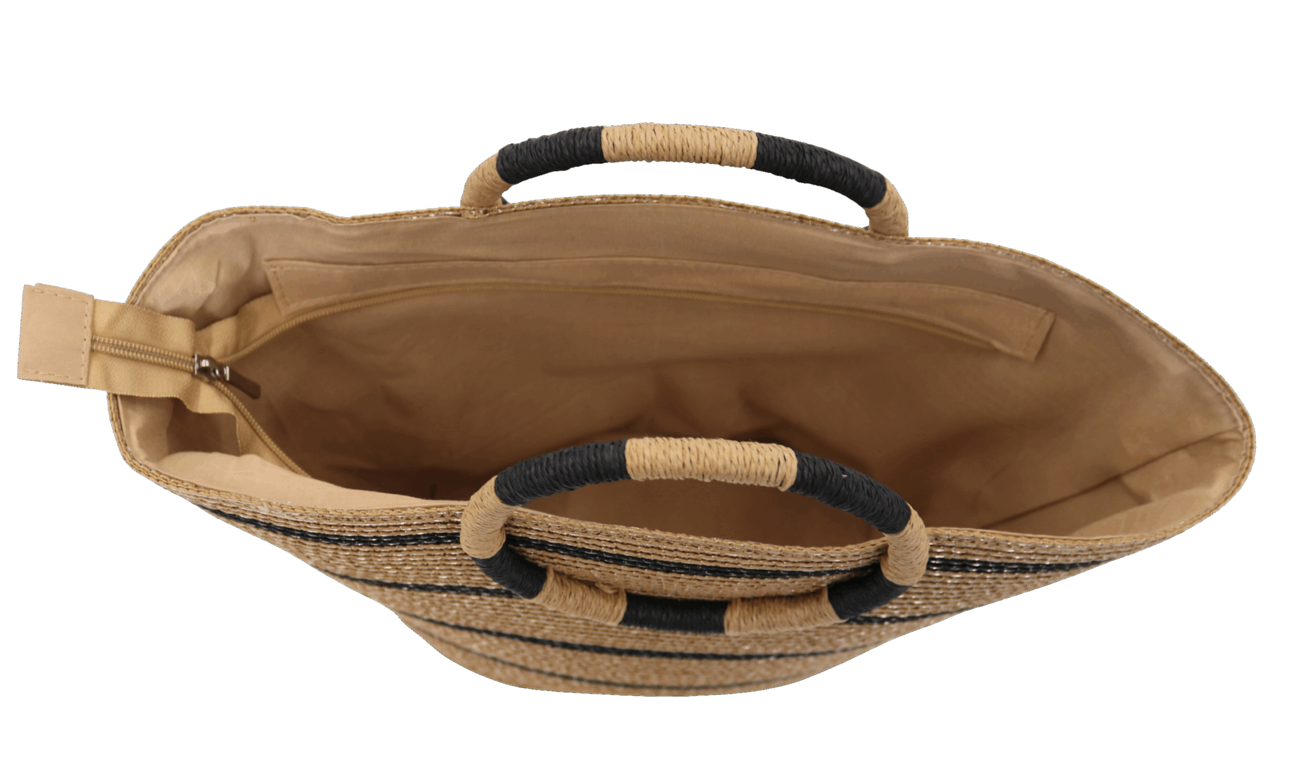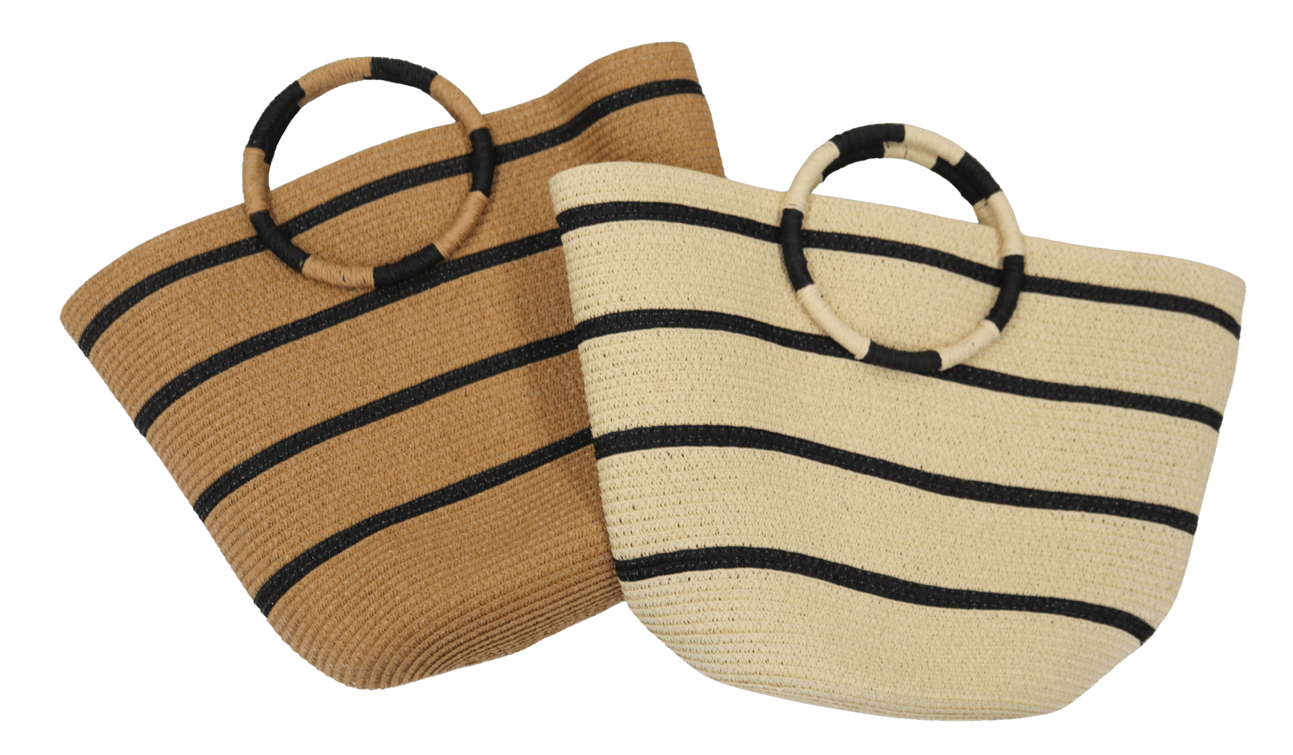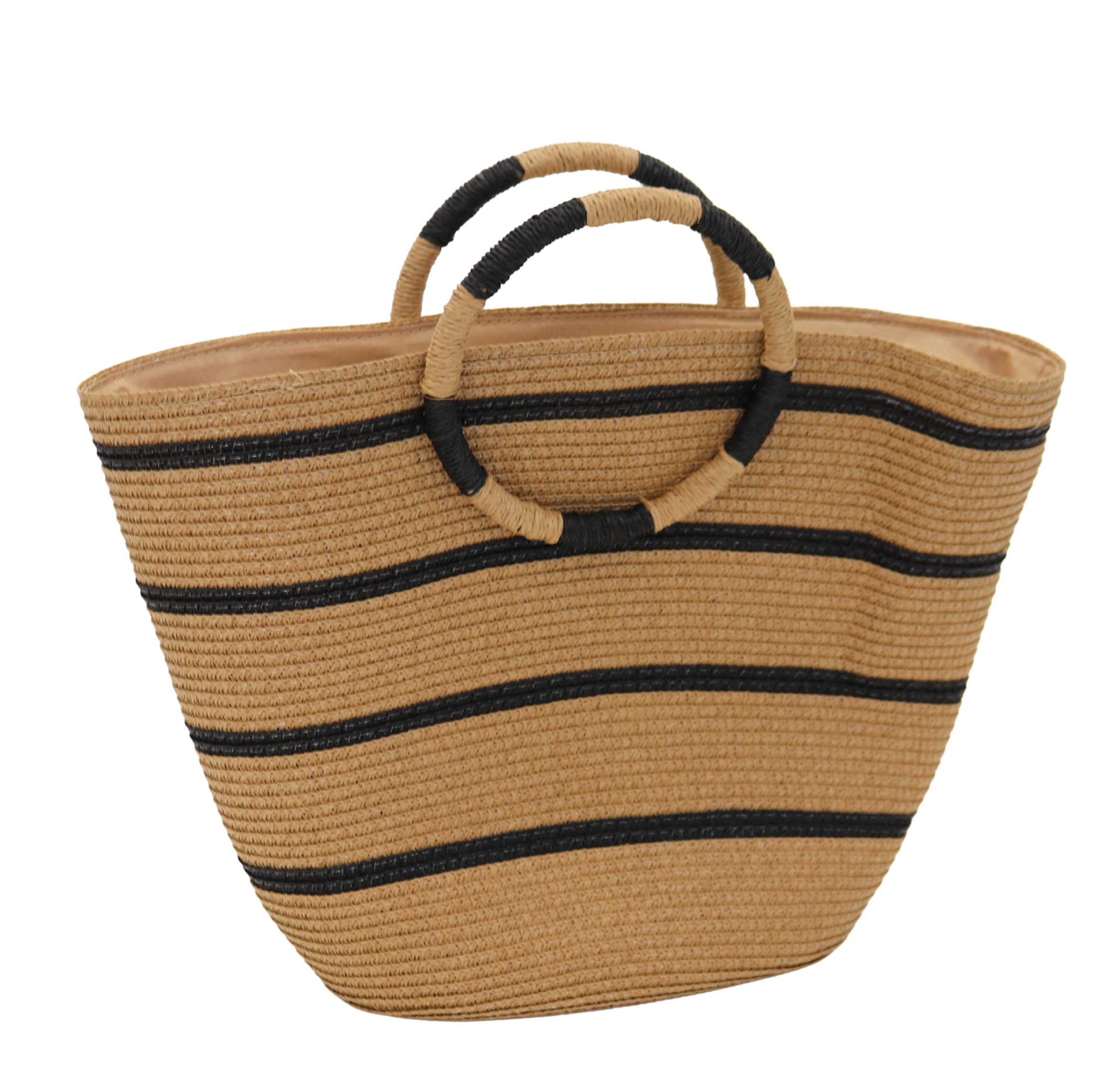 夏定番のかごバッグはボーダーがアクセント☆ ファスナー付で荷物が見えないのもうれしいポイント。