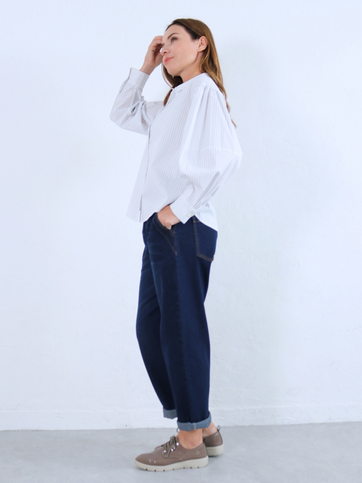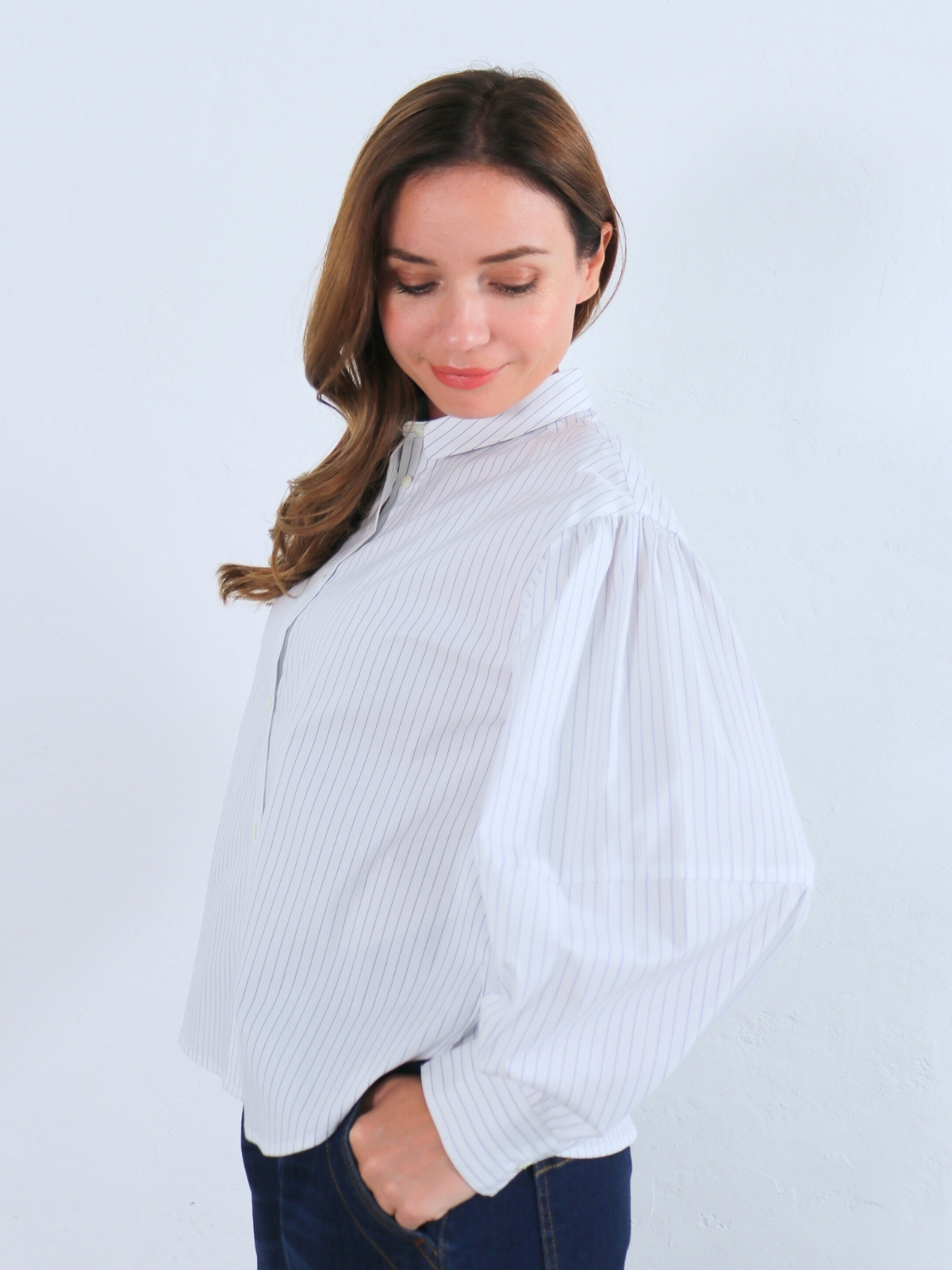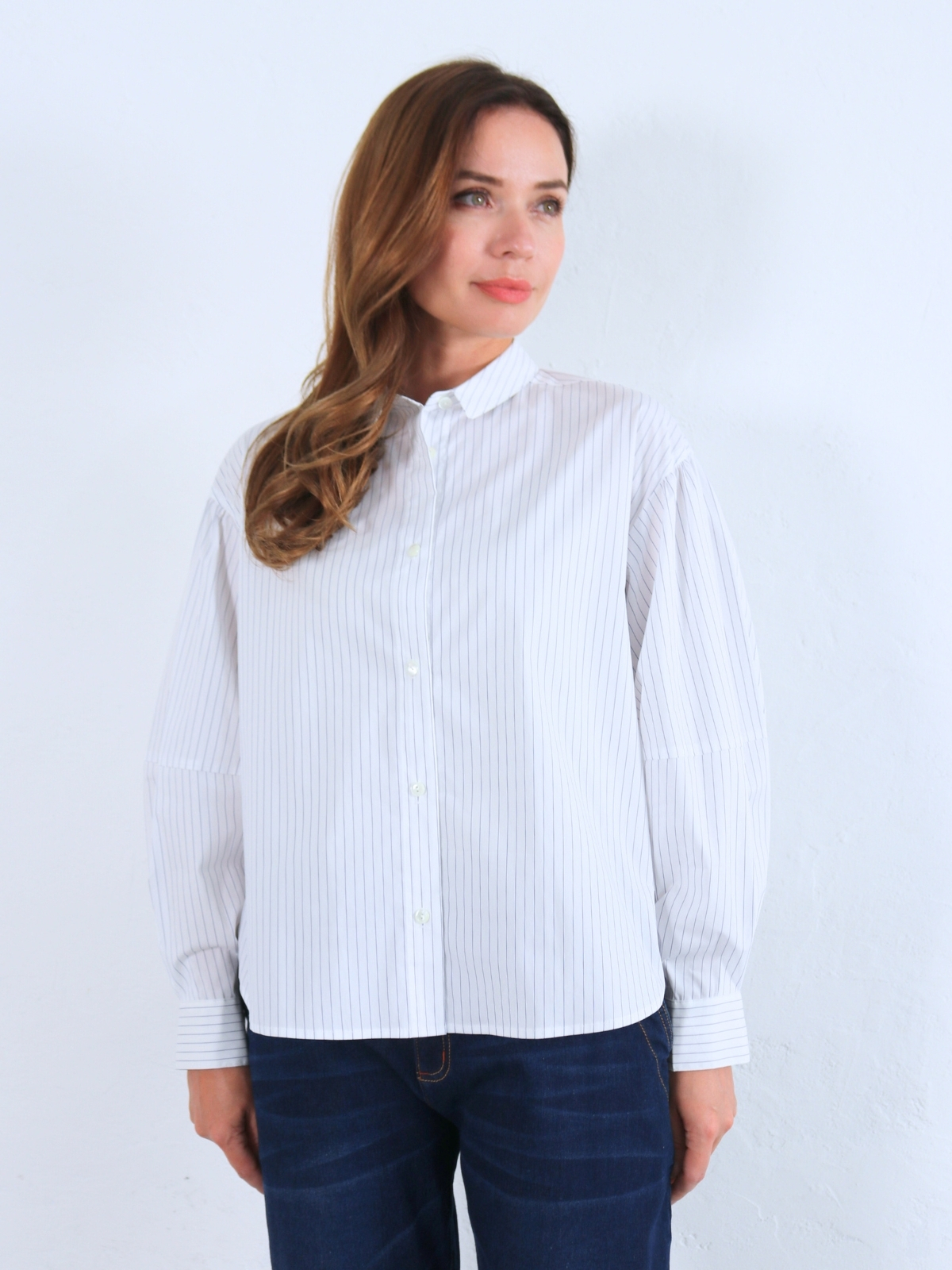 シンプルなシャツですが、袖にボリュームを持たせてポイントにしています。