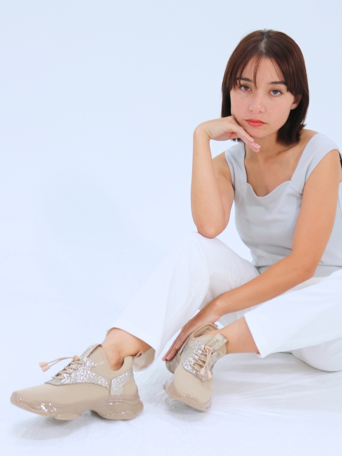 ニット素材×ボリュームソールの組み合わせが、 トレンド感と快適さを両立👟 大人上品な雰囲気のスニーカー。