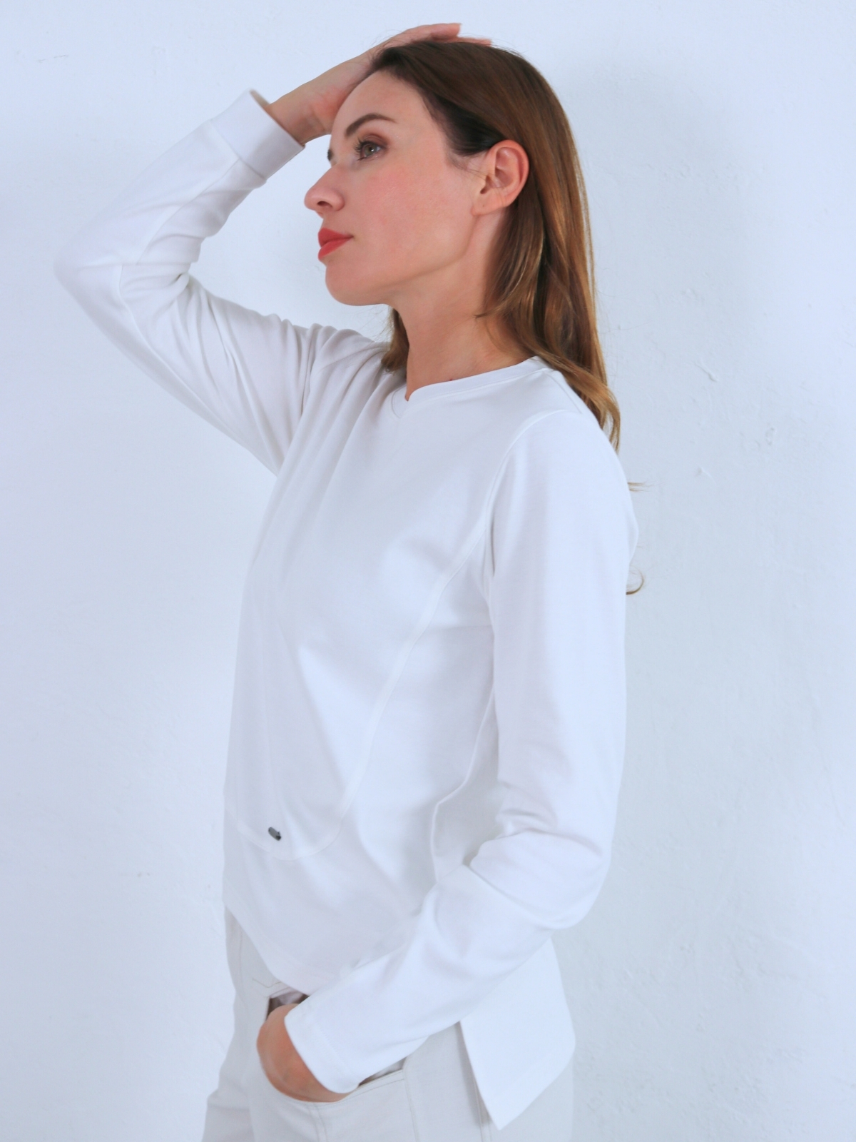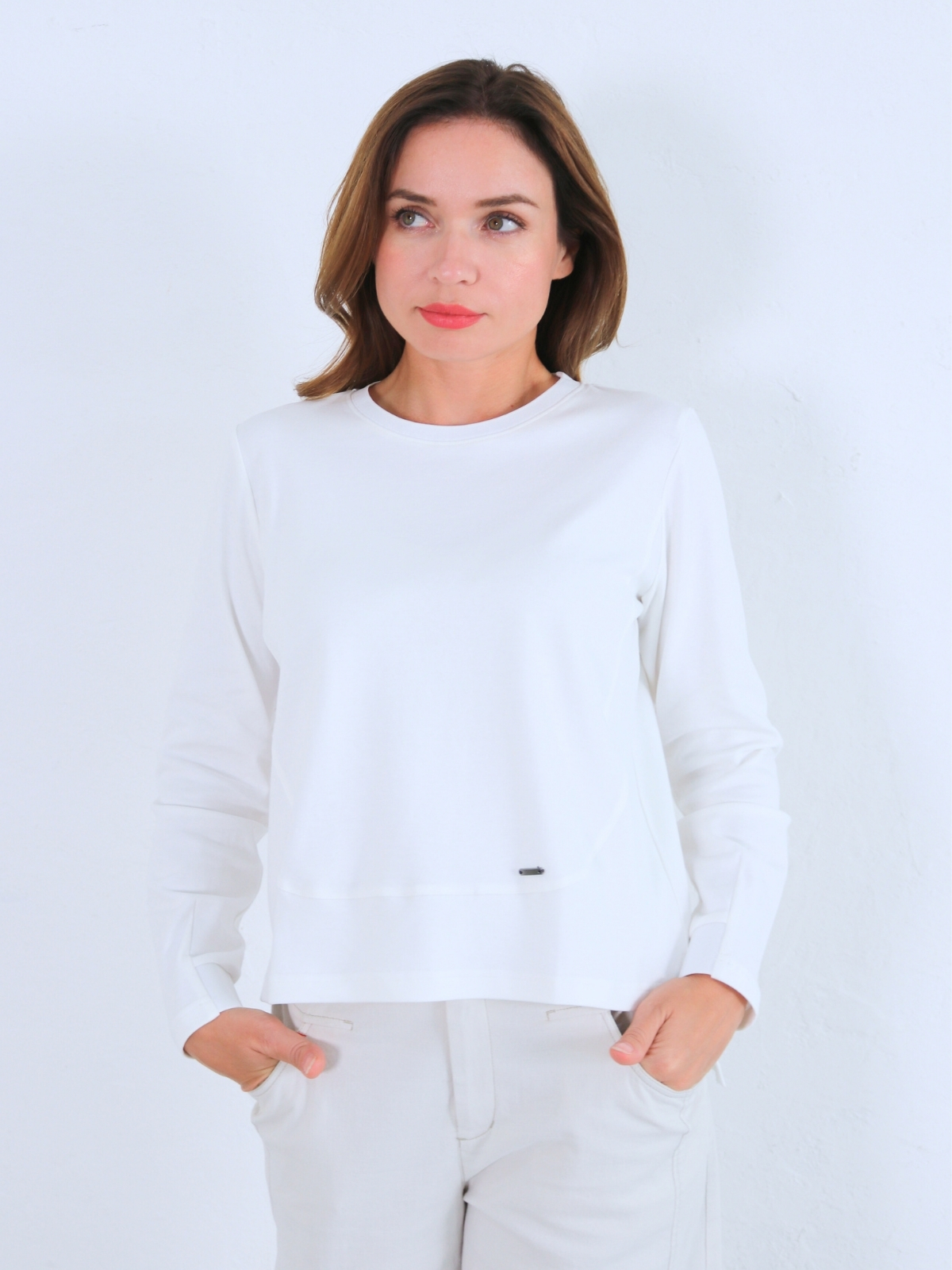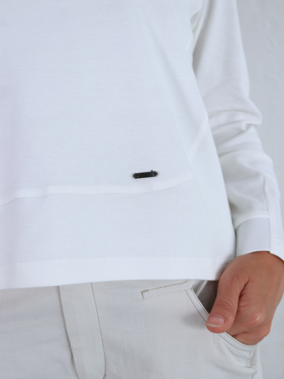 切り替えラインでスッキリほっそりの視覚効果も有りな長袖プルオーバー。