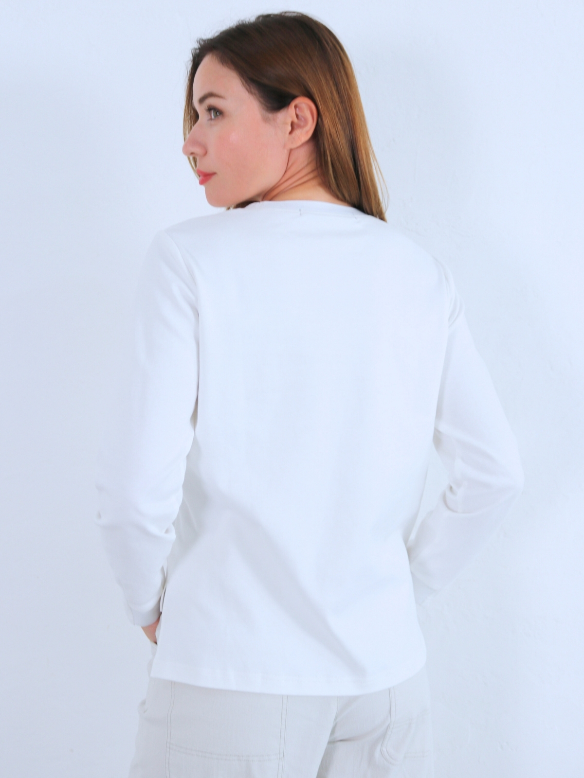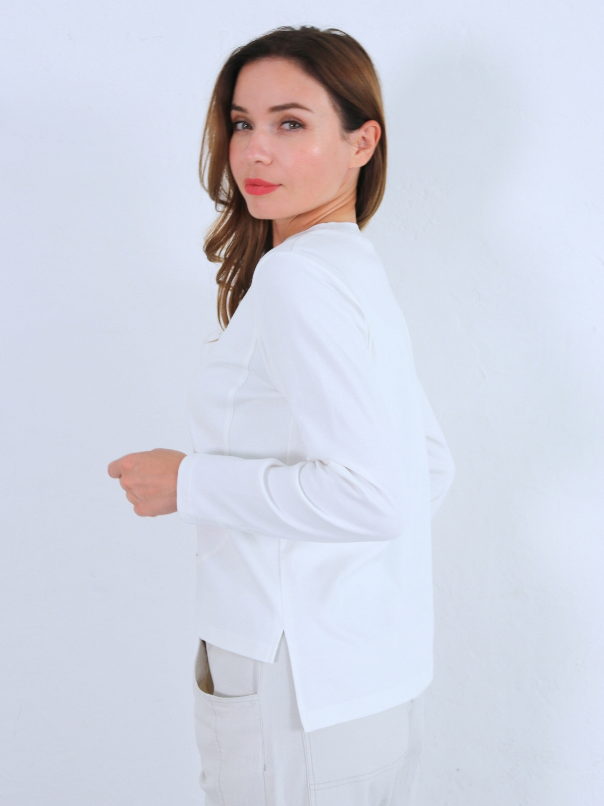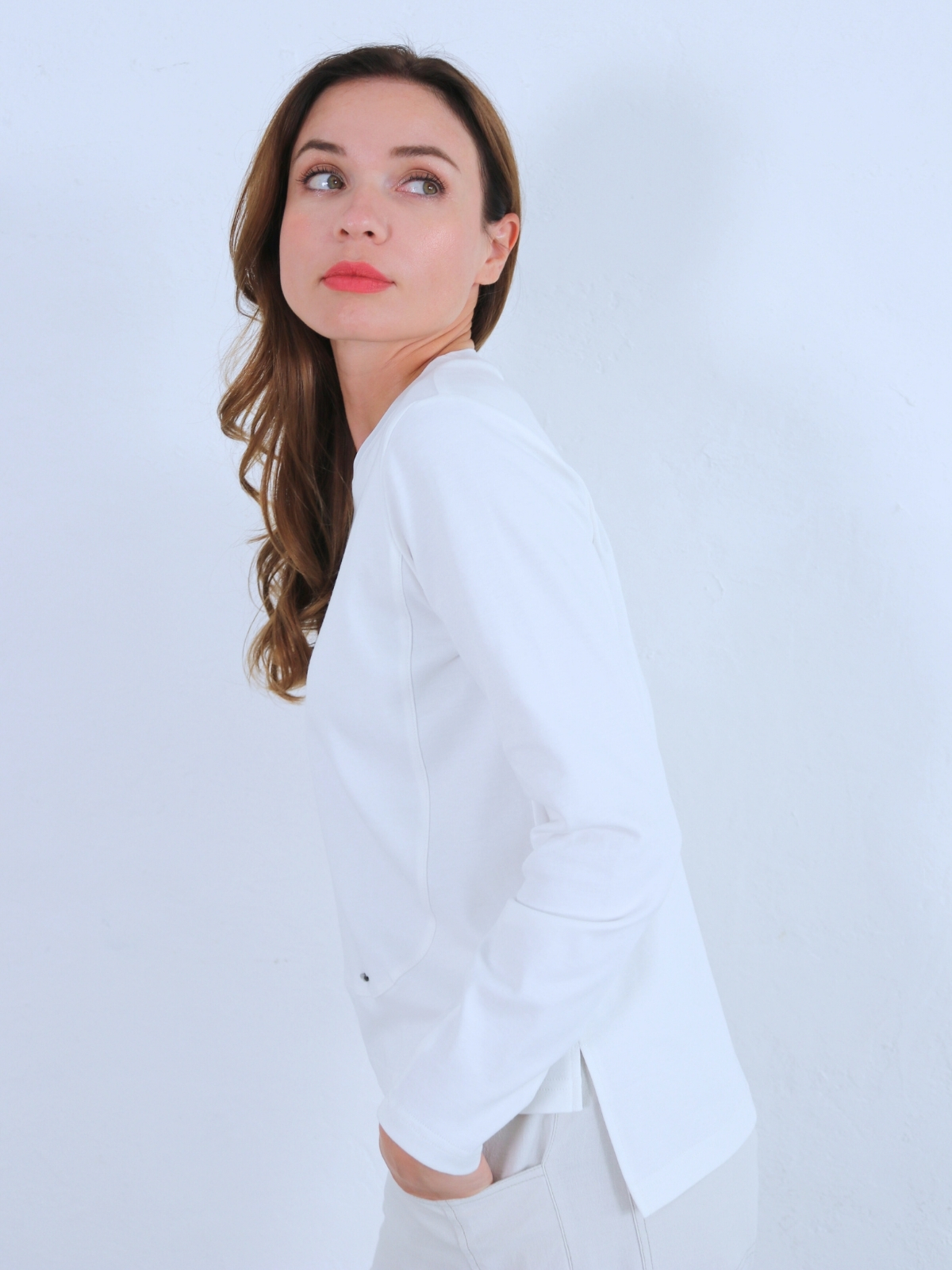 切り替えラインでスッキリほっそりの視覚効果も有りな長袖プルオーバー。