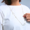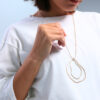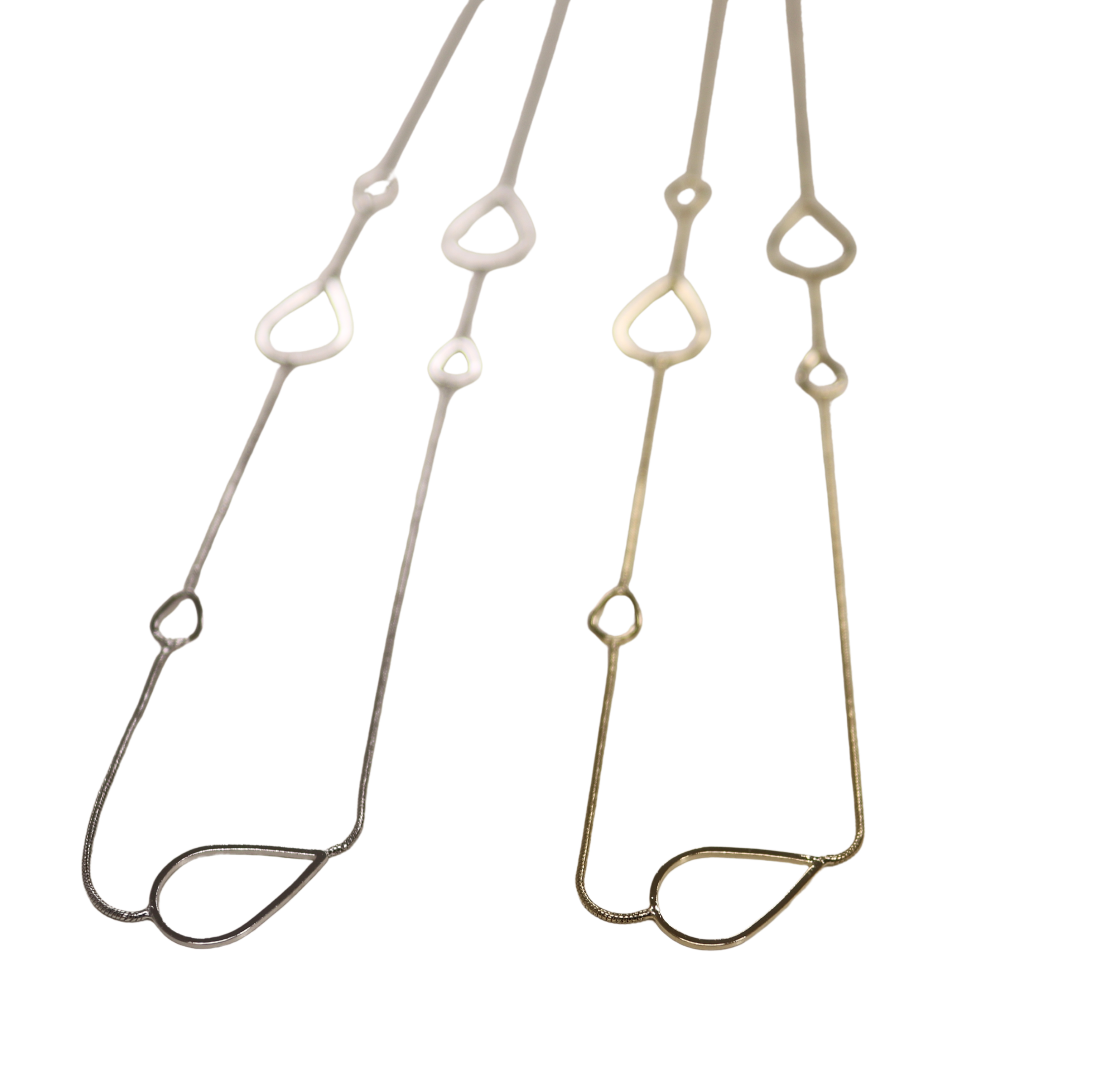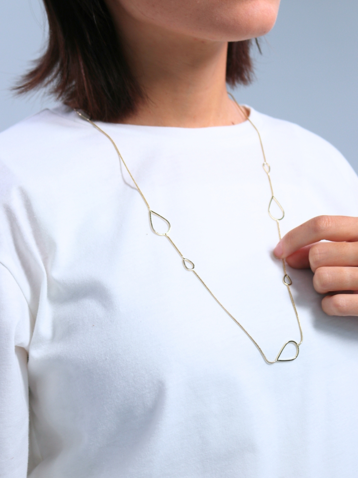 大小のパーツが連なったネックレスはシンプルなトップスのアクセントにピッタリ。 涙型のパーツが女性らしい✨