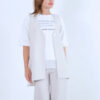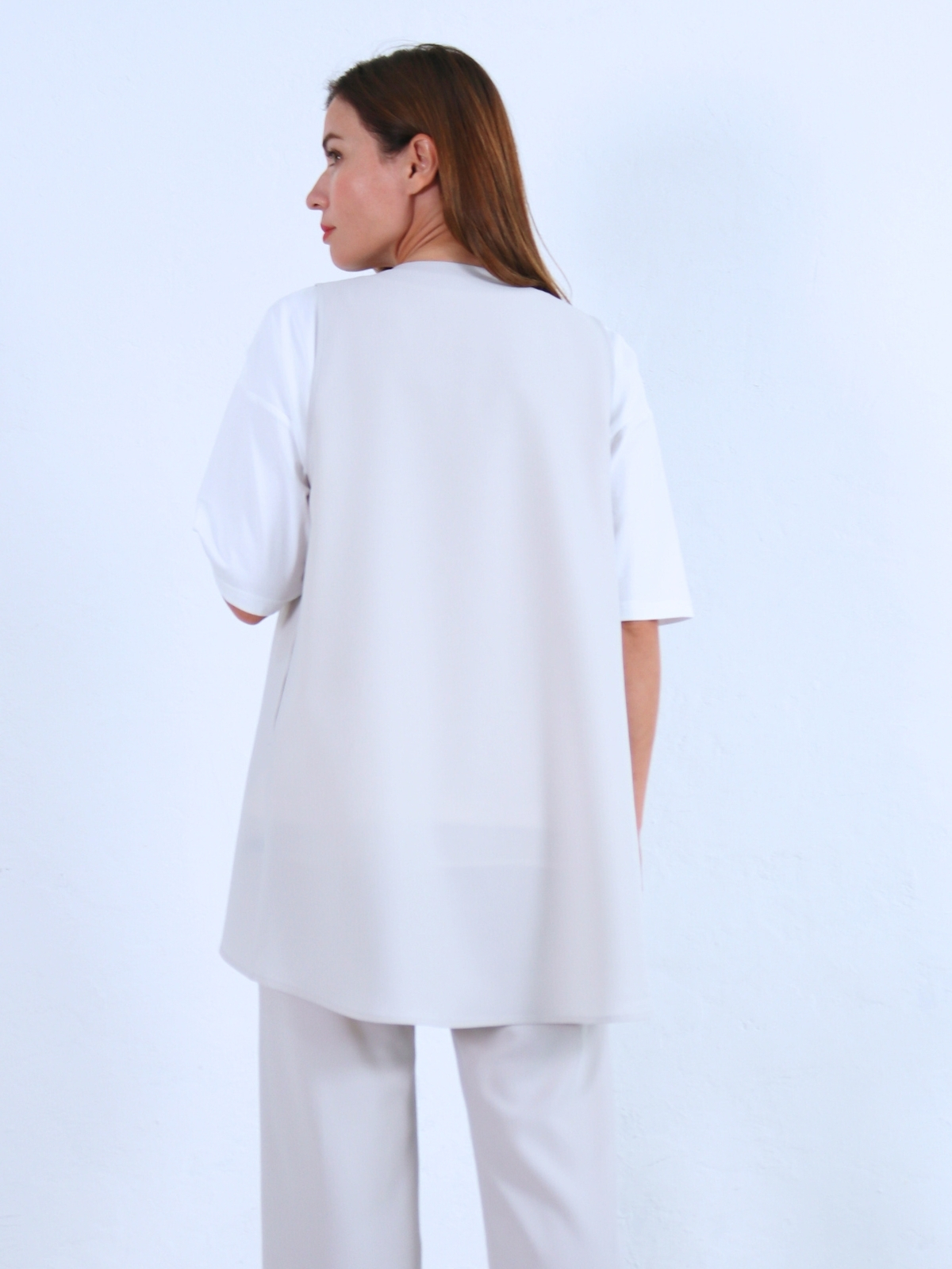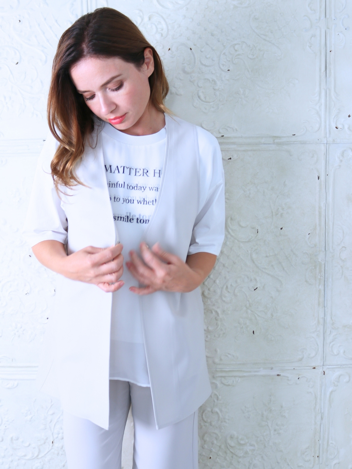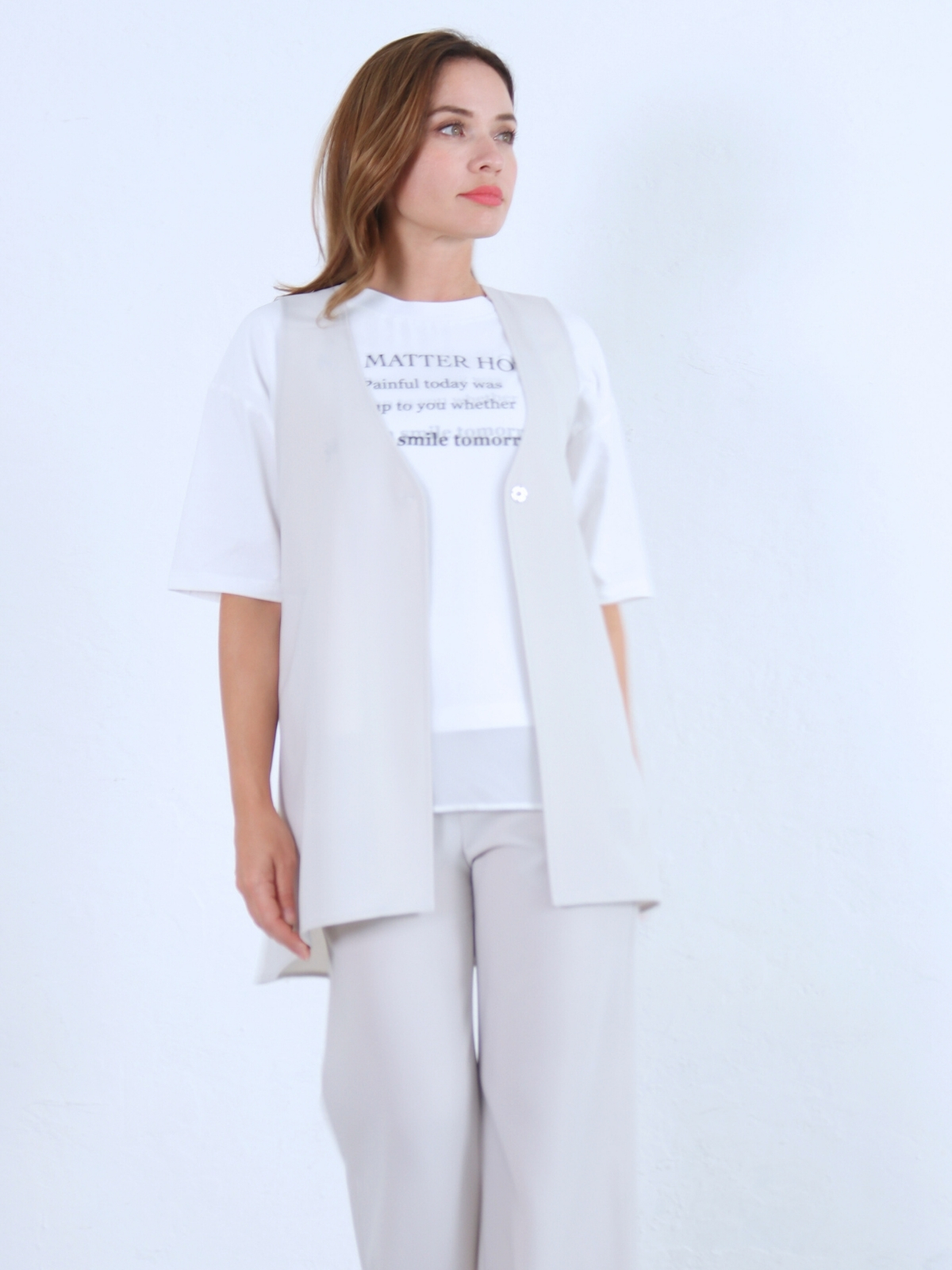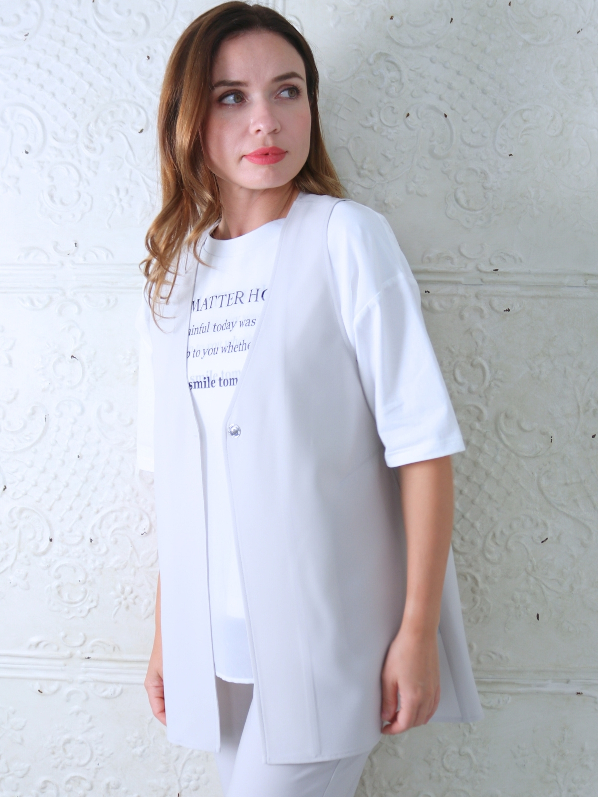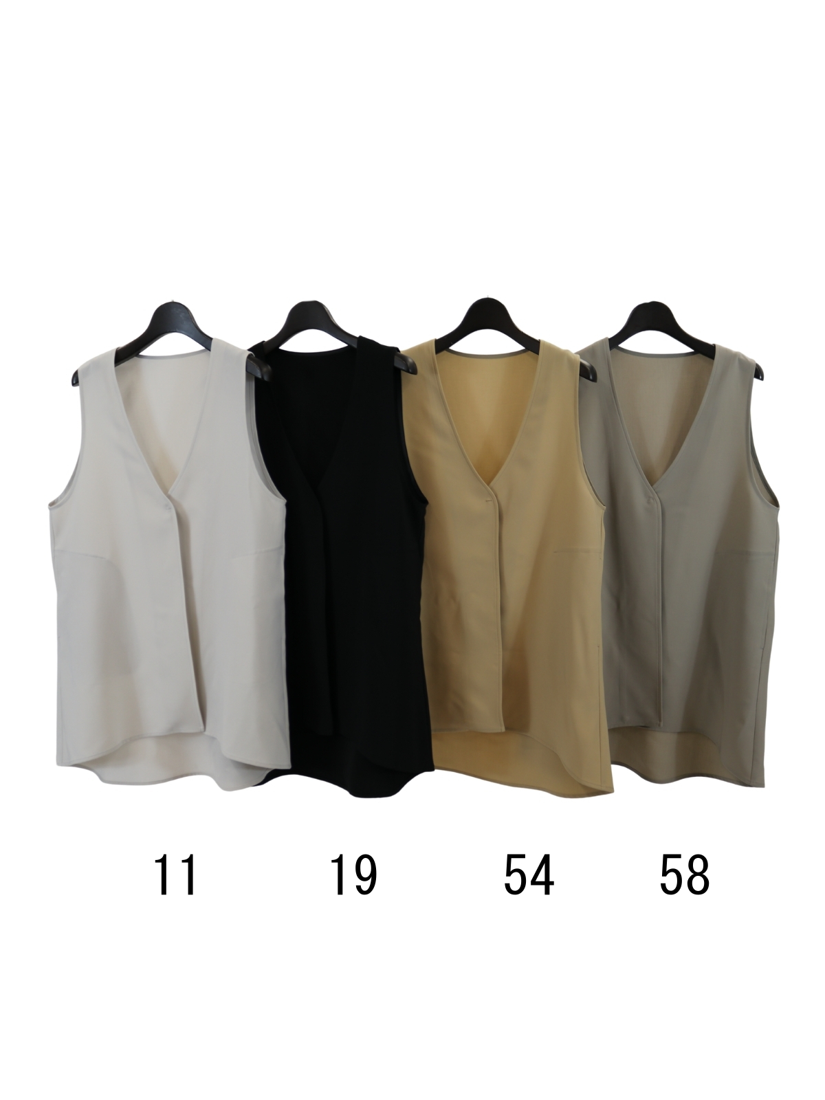 上品な光沢のあるストレッチ素材の気軽に羽織れるチュニックベスト。
