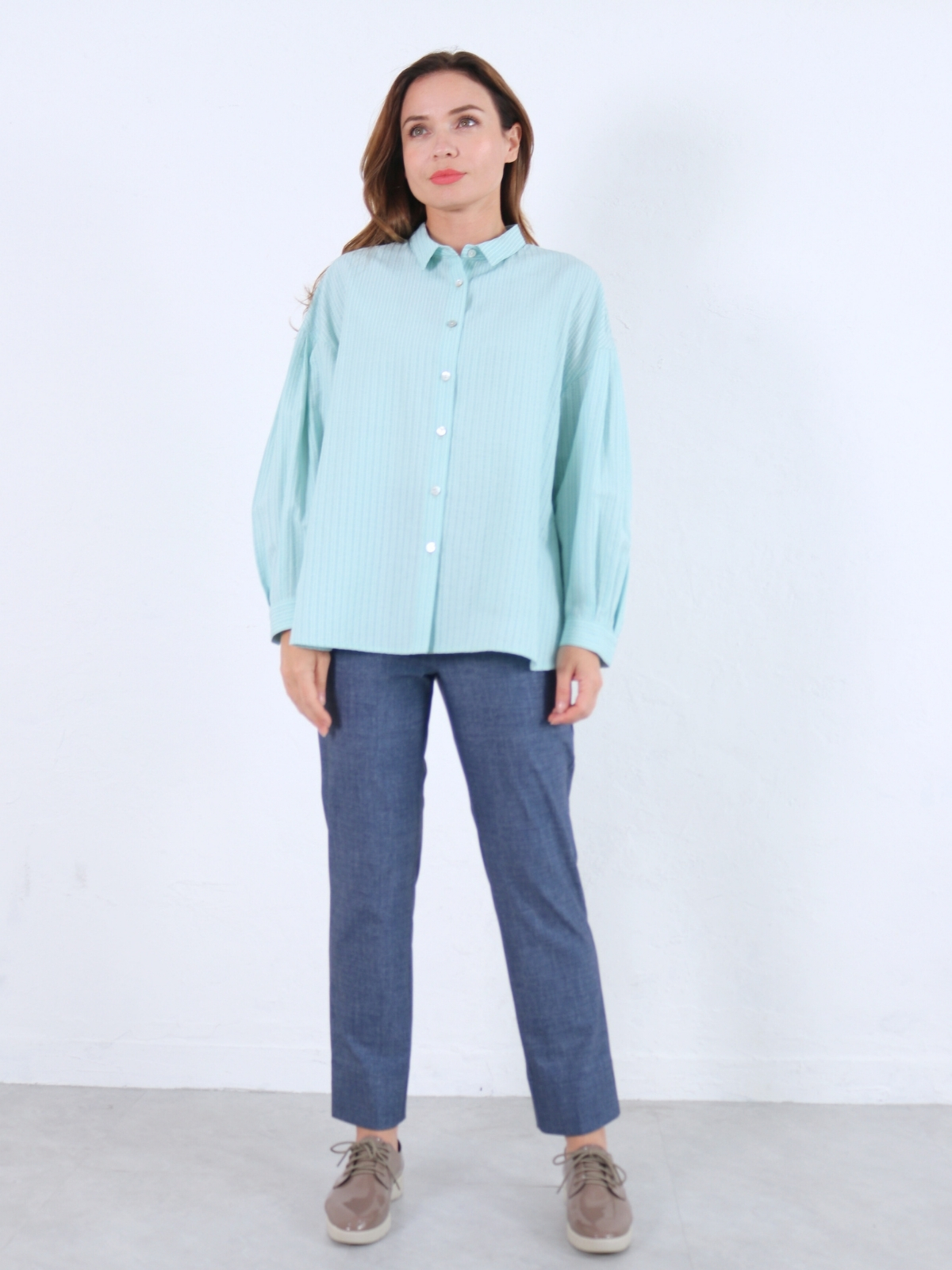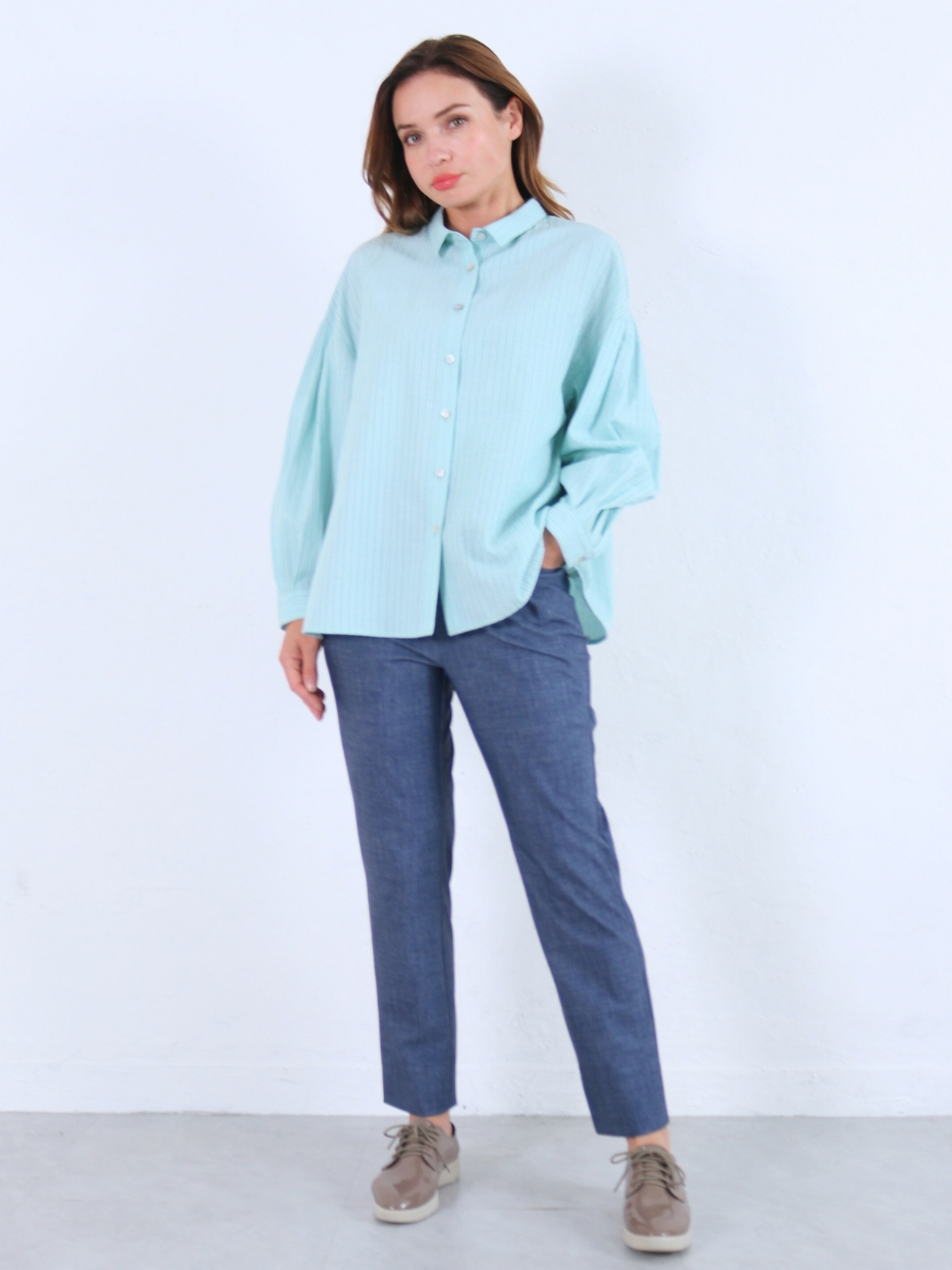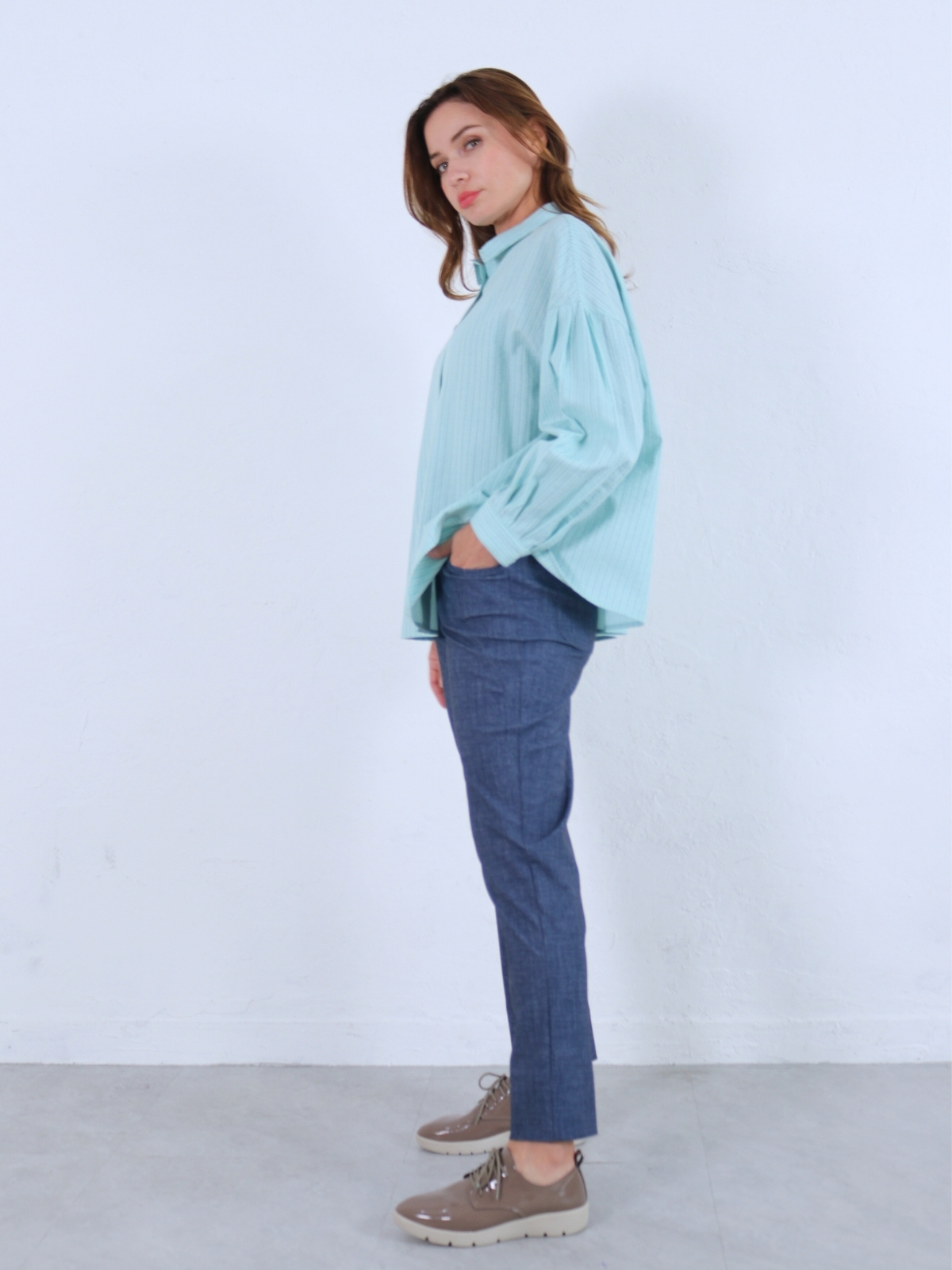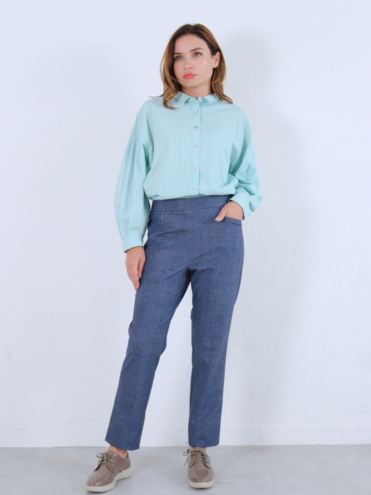 シルエットはクロスポイントの定番…9分丈スリムパンツです。