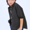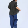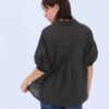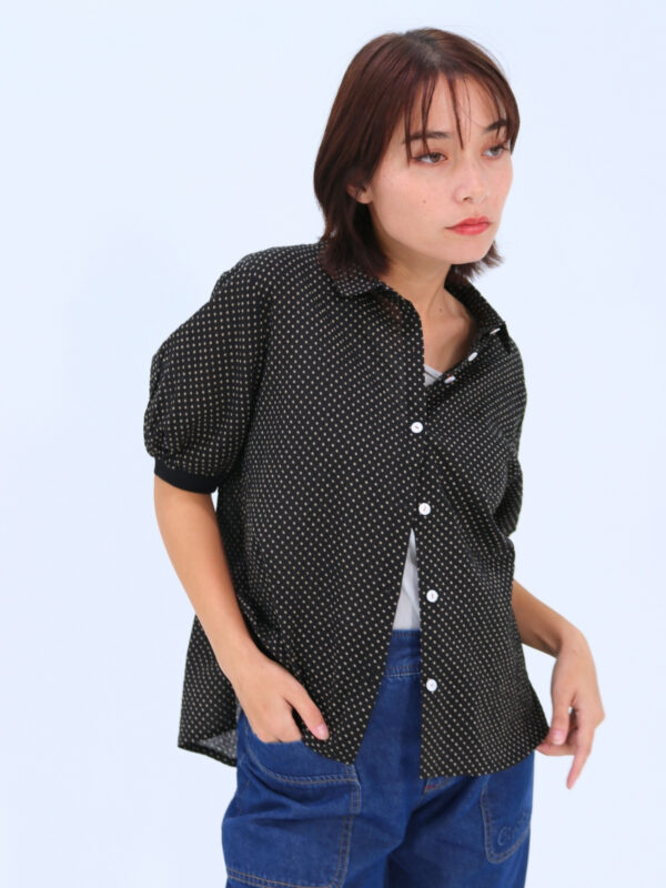 袖口にKNITリブを使った5分袖前あきシャツブラウス。