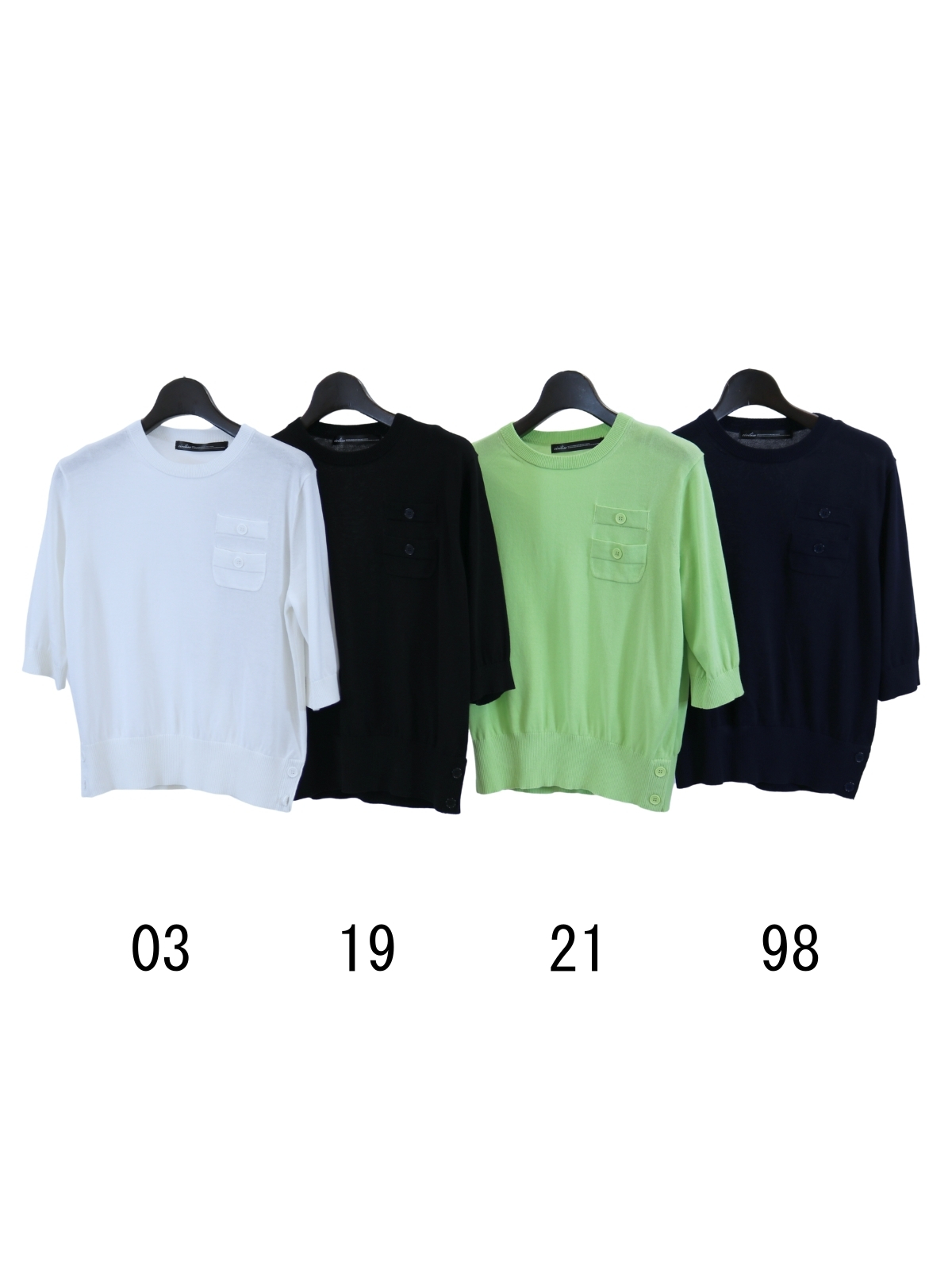 上質コットン糸を使用した釦付ポケットがポイントの5分袖ニット。