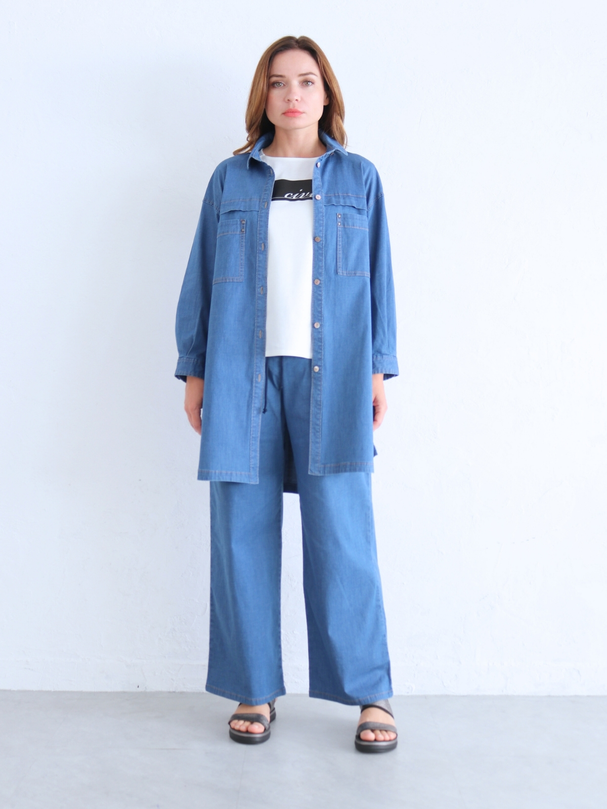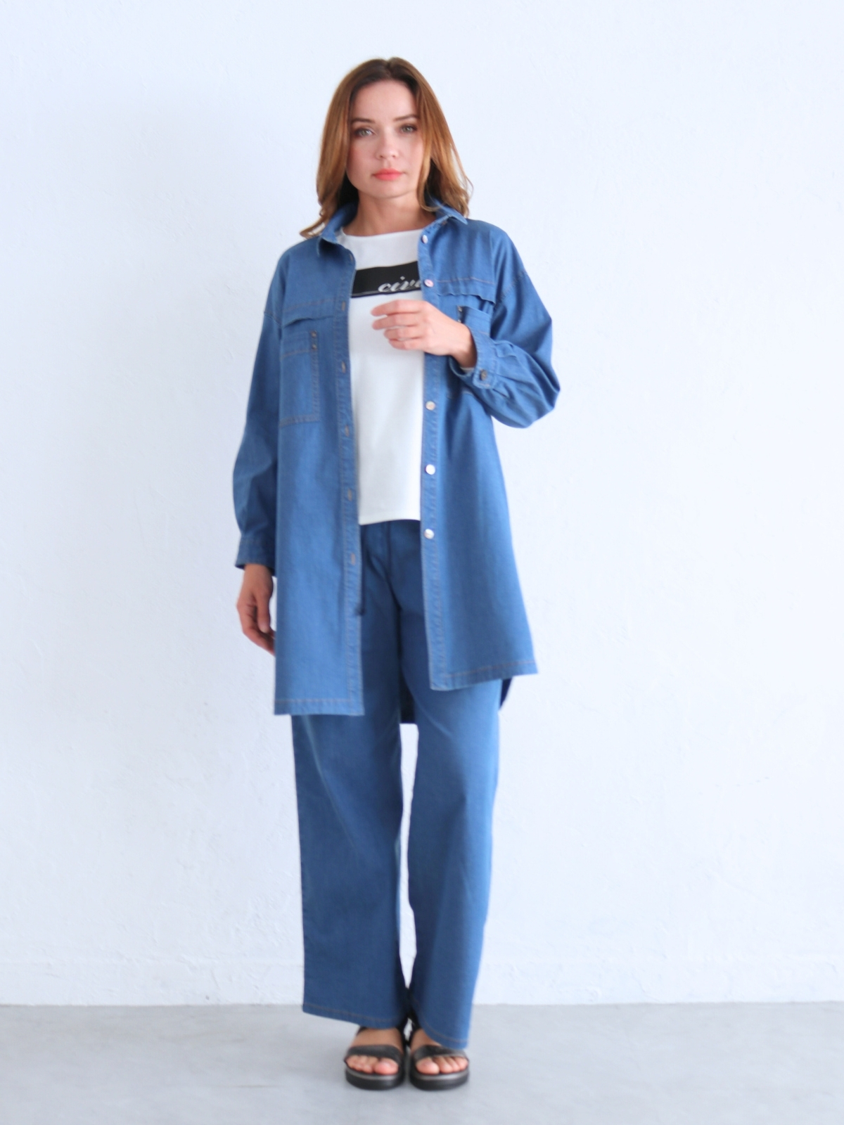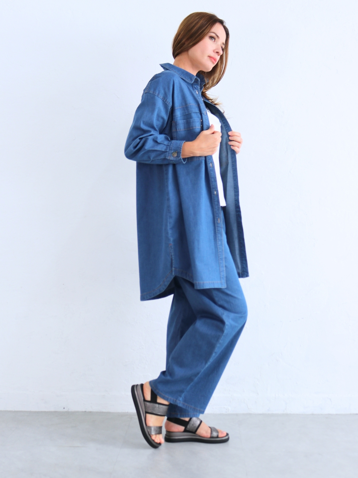 4.5ストレッチデニムロングブラウス【95201】シビリゼ