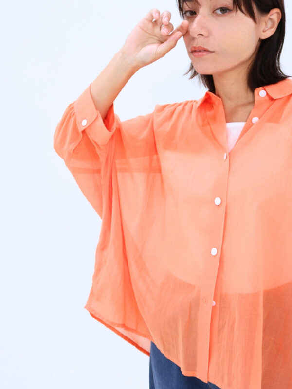 ギャザーを施しゆったり仕上げたブラウスタイプ。